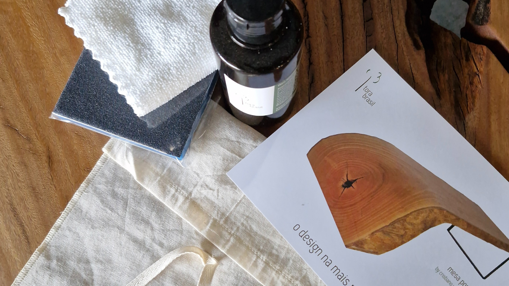 Os nossos clientes que escolheram Bona como acabamento, recebem um kit que conta com: 1 óleo bona 200 ml (para peças com esse acabamento) 1 pano de algodão 1 esponja abrasiva