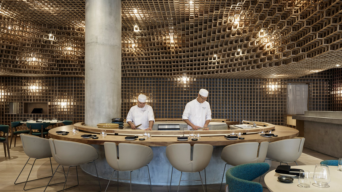 In 2017, Artur Casas’s office brought us the challenge of making a round counter at Kosushi Miami. We divided the counter into several wooden pieces to be joined and form the desired whole part. We assembled it remotely first, with the whole mold in Brazil, and then took it to one of Miami’s most popular sushi restaurants.