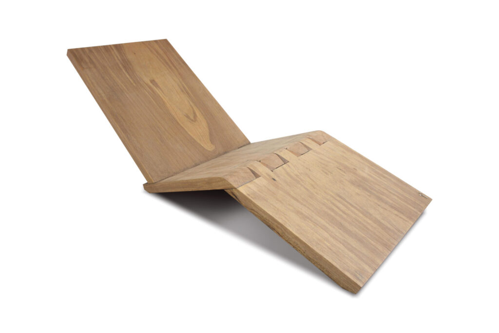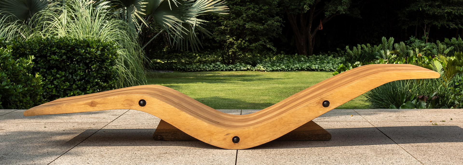 The Matueté Chaise was designed in 2009 for a Cor house with Patrícia Martinez. From the Tupi-Guarani, Matueté means “very well done, great.” The idea of the chaise is to take a wooden board and divide it into three parts, seat, backrest and footrest, so that the wood fits and is subtle, like a recliner.