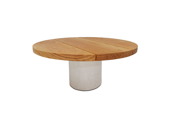 The Potassaba dining table was created in 2019 with the goal of meeting the needs and desires of customers. Its name comes from the Tupi language and means “the desire, the want, the will.” It is composed of straight geometric cuts and combines three or four wooden planks to create a larger diameter round table with a concrete base. Furthermore, this table has smoother wood veins and no holes in the center, unlike the Manauara table.